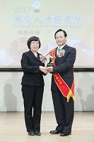 「國家人才發展獎」選拔對人才發展有具體貢獻之企業單位,並予以公開表揚。圖片為勞動部蘇麗瓊政務次長頒發獎座予2017得獎單位-桃竹苗分署合影。
